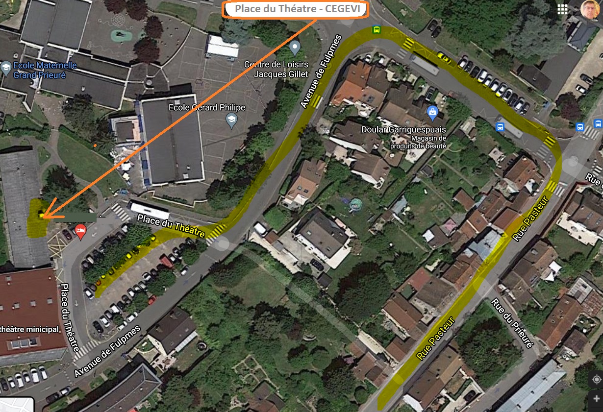Place du Théâtre, près du Théâtre et de l'école Gérard Philippe. Parking gratuit. Quelques marches d'accès.
